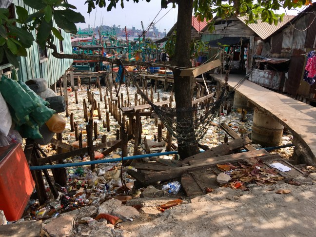 The trash problem is overwhelming. Literally, citizens of Sihanoukville appear to have succumbed to living amid the mounds of trash and heavily littered ground that lies beneath them. Plastics of all sorts—disposable food and beverage containers, bottles, wrappers and packaging—metals ranging from construction debris to soup cans, food waste, old clothing scraps, and simply indescribable amounts and varieties of rubbish seem to be growing around them.