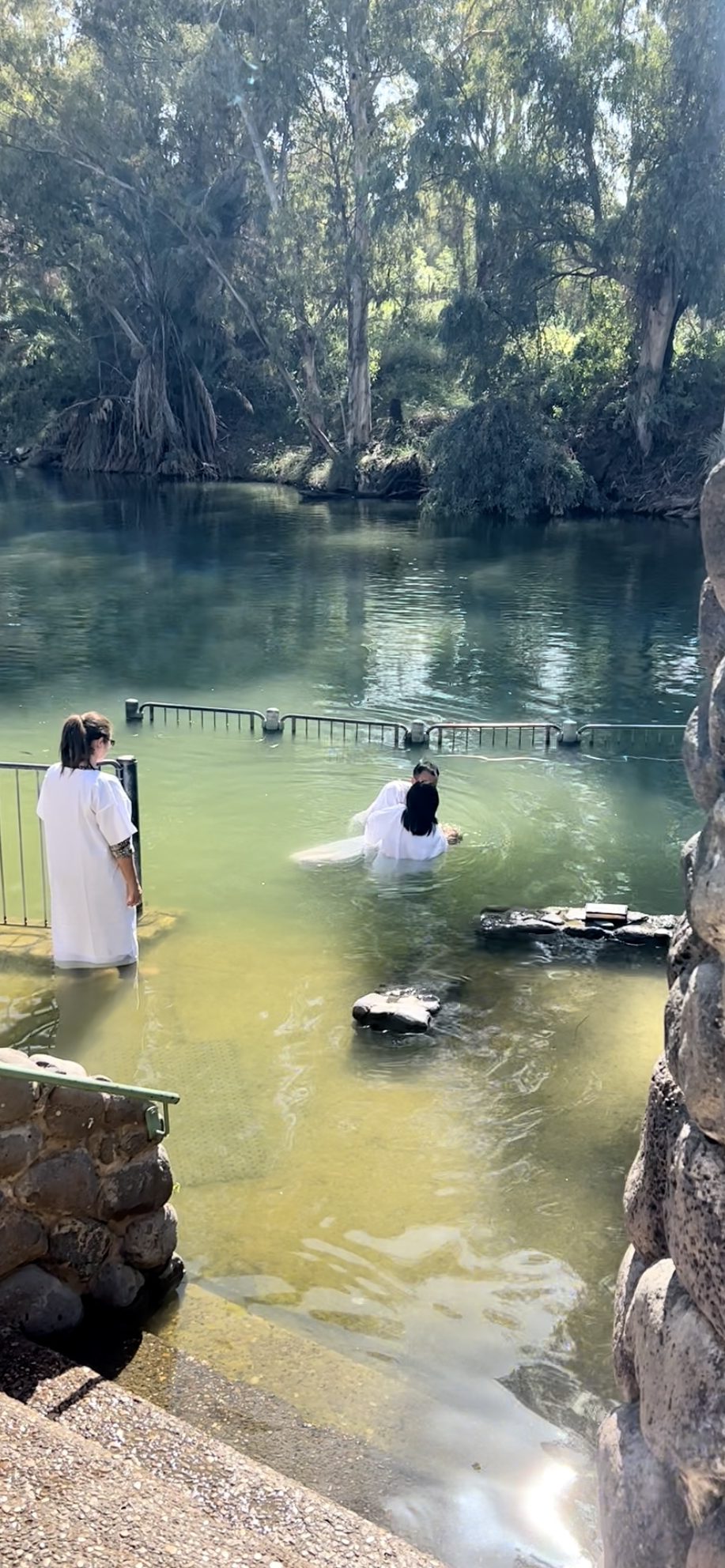 The next day, as we were departing Tiberias for Tel Aviv, we visited The Jordan River. There has been some ongoing disagreement about the actual site of Jesus’ baptism, whether on the Jordan or the Israeli side of The Jordan River. But nonetheless, there is quite a site commemorating the baptism on the Israeli side. We witnessed a woman being baptized in the river while we were there and it was quite moving.