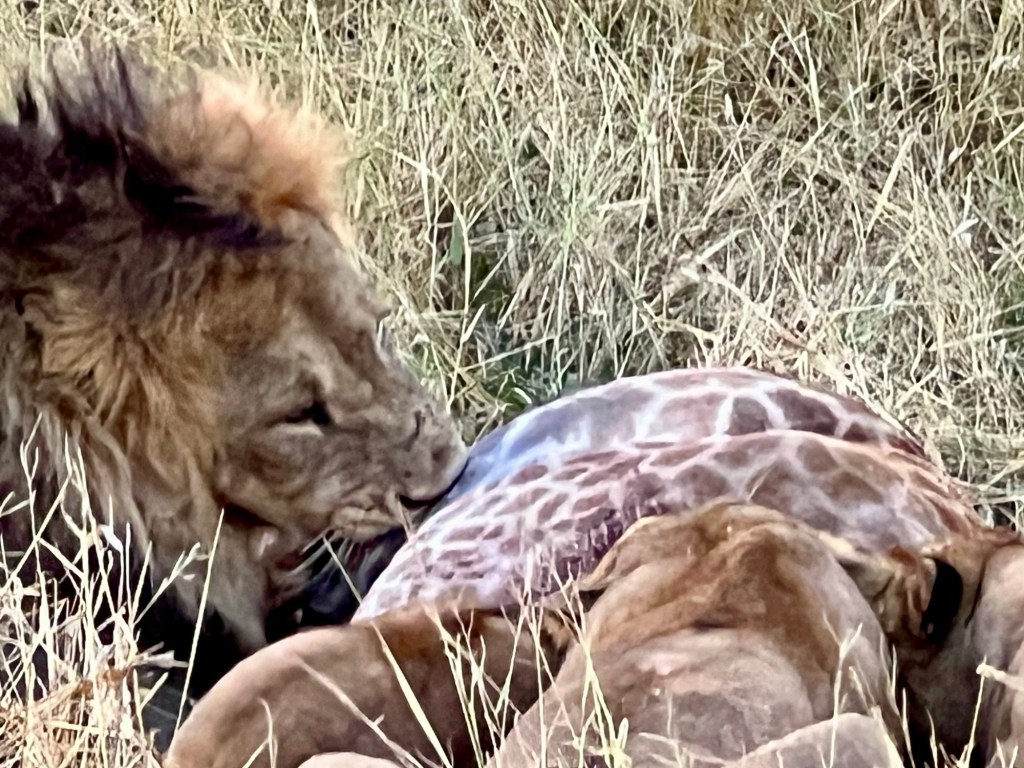 To our amazement, we watched as the females stalked, chased, took down and killed a giraffe.