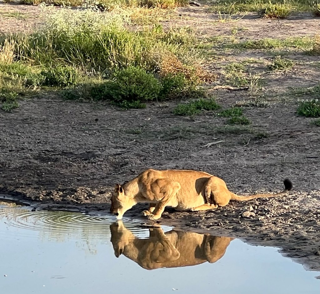 As our time at Chobe came to an end, we had two final sightings. Just before we left the lodge these giraffes came to the watering hole in front of our tent for a drink. I had been longing to see the unique posture they take to drink and these three arrived to indulge me just in time.